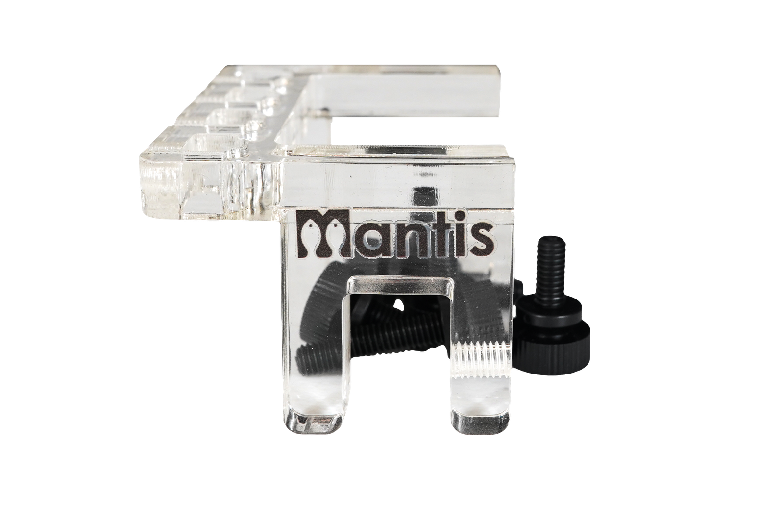 Un soporte Mantis de acrílico bien construido diseñado para sostener las mangueras de cualquier sistema de dosificación en su lugar en el costado del tanque o sump.
